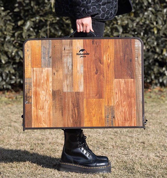Bàn gấp vân gỗ Naturehike NH20JJ028 cắm trại. Là một chiếc bàn khi gập gọn giống như một chiếc “Vali” nhỏ có quai xách. Với khung nhôm chắc chắn bao quanh và phối màu những tầm gỗ ép đẹp mắt. Ngoài việc chiếc bàn có vẻ công kềnh ra thì chiếc bàn có trọng lượng nhẹ, mặt bàn lớn có thể bầy biện nhiều đồ và tại trọng chịu được tương đối tốt lên tới 25kg