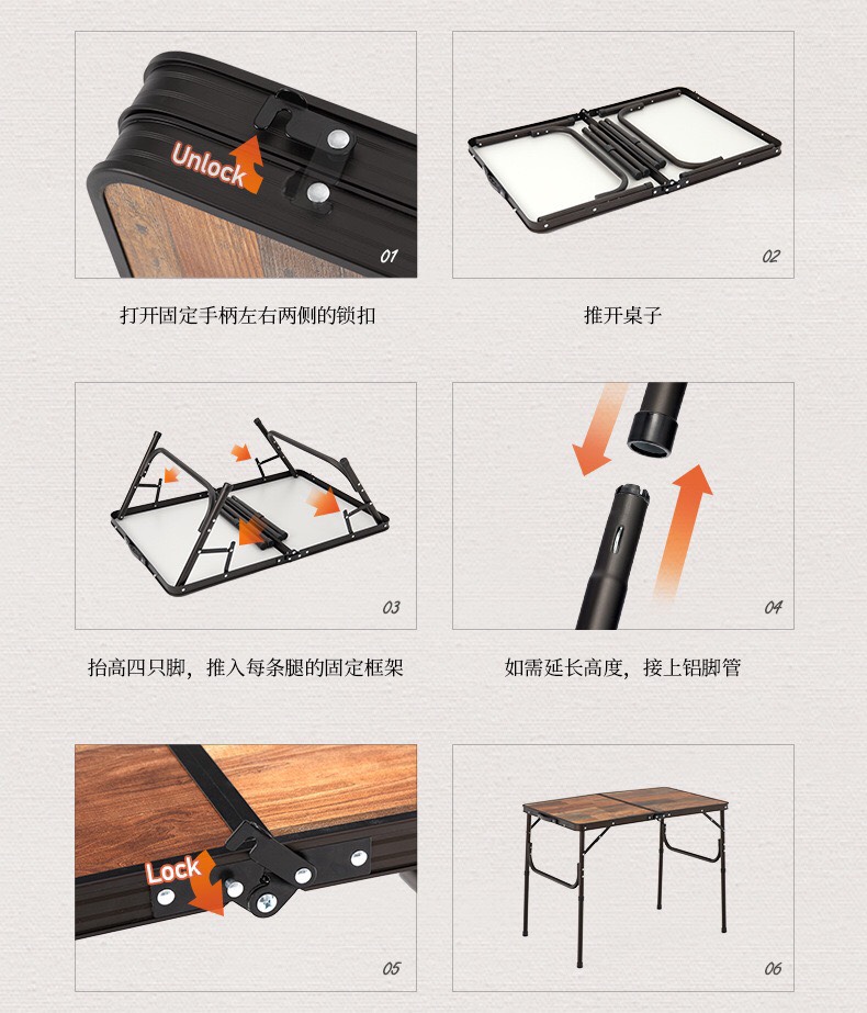 Bàn Nhôm Vân Gỗ Điều Chỉnh Được Độ Cao Glamping NatureHike NatureHike NH20JJ028