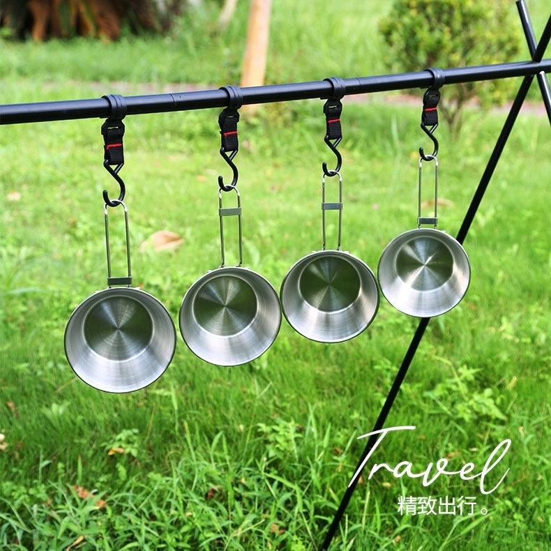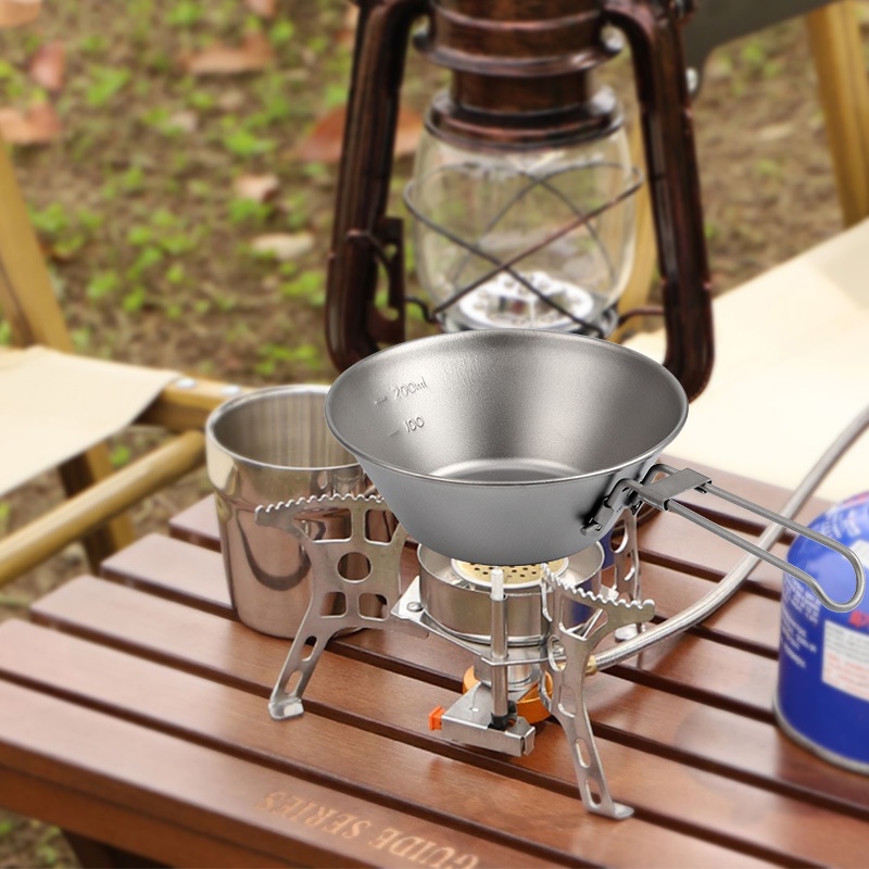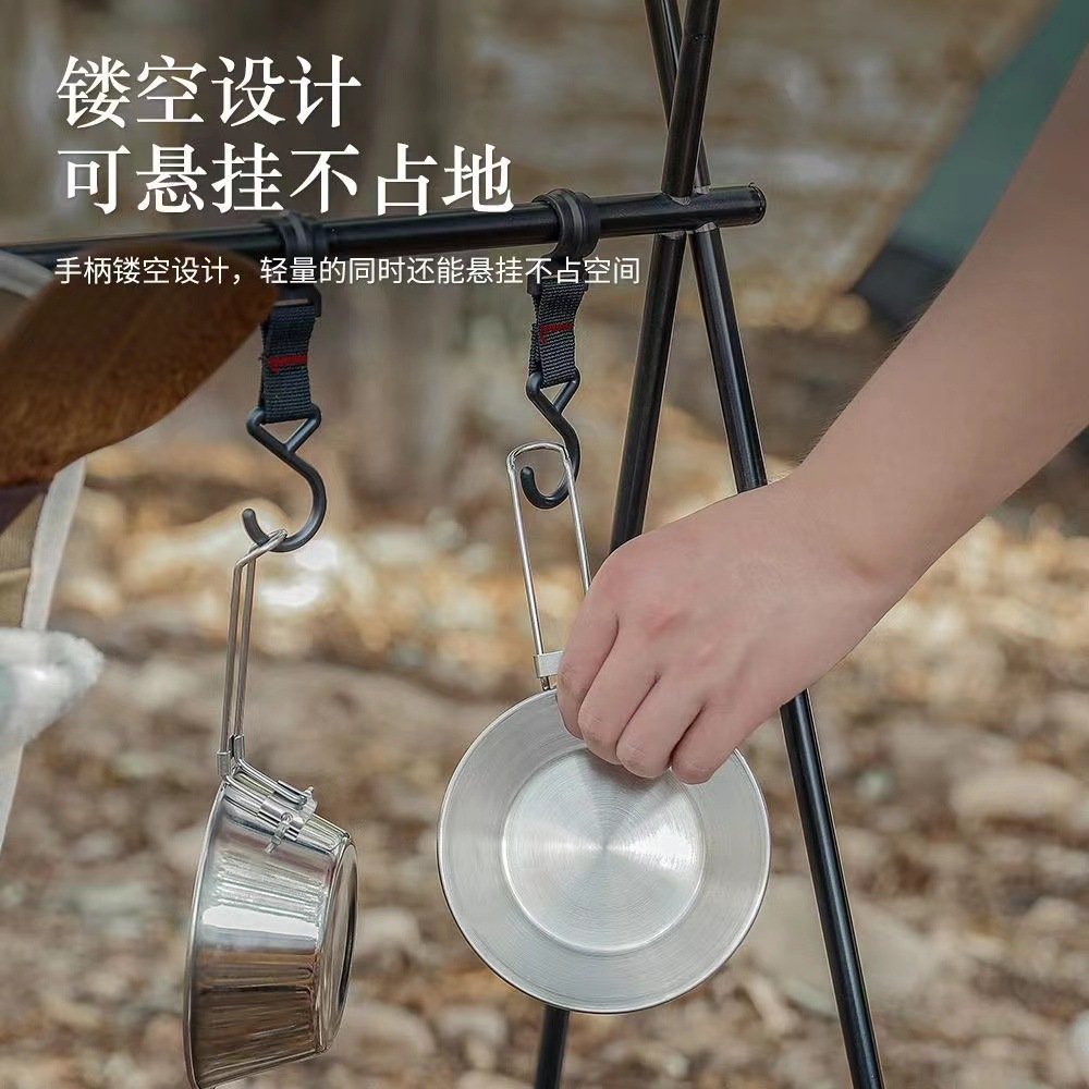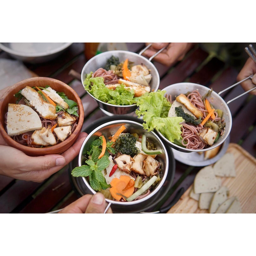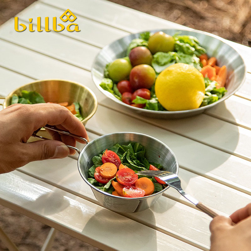 Bát ăn bằng thép không gỉ có tay cầm gấp gọn sử dụng dã ngoại cắm trại ngoài trời. Bát ăn dã ngoại được sử dụng đa năng: đựng và chế biến thức ăn và cả đồ uống như cà phê, đun nước sôi hay làm cối để đâm gia vị.