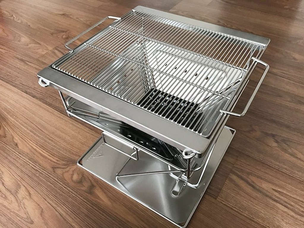 Độ cao của vỉ nướng có thể điều chỉnh giúp mặt vỉ nướng không tiếp xúc quá gần với than, tránh thức ăn bị cháy khi nướng.Khi gấp gọn, bếp nướng được đựng trong túi vải chống nước có quai xách tiện dụng giúp dễ dàng mang đi xa như đi du lịch, dã ngoại, cắm trại, picnic.Thích hợp sử dụng trong các chuyến dã ngoại với 4-5 người. Mặt nướng làm bằng thép không rỉ 304, các phần dưới sử dụng thép chịu nhiệt 201