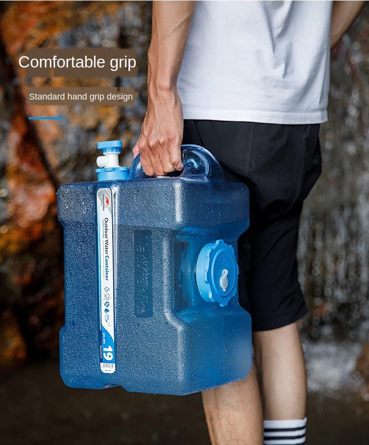Bình nước được làm từ chất liệu nhựa PC an toàn cho sức khỏe, không độc hại, không mùi, chịu được nhiệt độ từ âm 20 °C đến dưới 100 °C. Đồng thời đảm bảo độ bền, chắc chắn khi bảo quản nước, chịu sức nặng của dung tích lớn. Can được thiết kế tay cầm giúp việc xách theo người, lấy nước hoặc xả nước đều vô vùng tiện lợi. Các tay cầm này cũng được thiết kế để có độ ma sát cao, chắc chắn mà không làm đau tay khi xách lượng nước nặng.