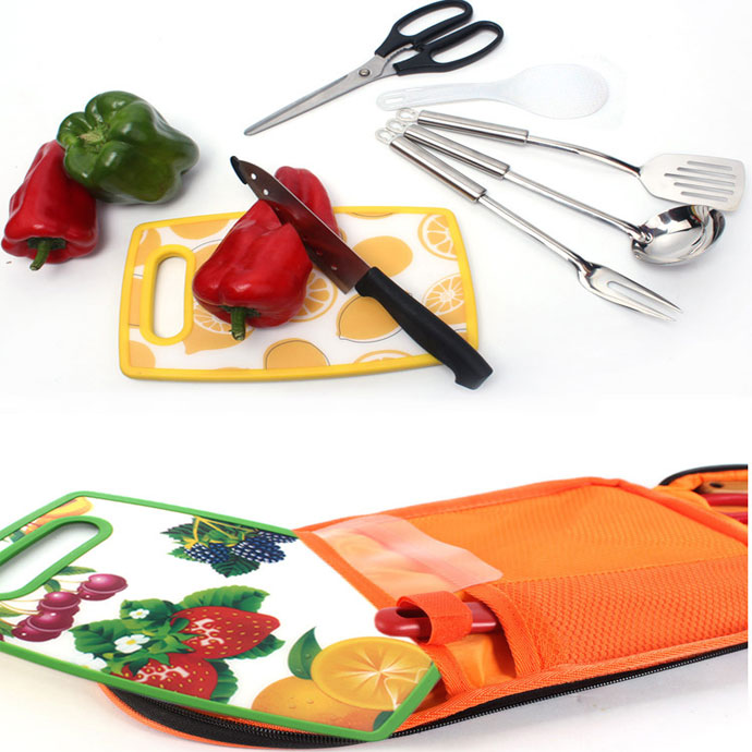 Phần tay cầm có khả năng cách nhiệt, dễ dàng cầm nắm, vệ sinh, chống ăn mòn và độ bền cao.Các dụng cụ nhà bếp này được đựng trong 1 túi đựng nhỏ gọn.Túi đựng được chia thành các khoang nhỏ để đựng các vật dụng phù hợp.Sản phẩm được thiết kế gọn nhẹ, kết hợp sử dụng trong nhà và ngoài trời