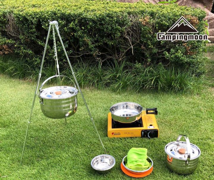 Bộ nồi cắm trại inox 304 Campingmoon MC-210 5 món sử dụng đi Camping. Với 3 món nồi lớn, nồi nhỏ, chảo Inox. Kết hợp với 6 bát con đi kèm đĩa nhỏ, giúp chúng ta luôn có được một bữa ăn ngoài trời khi đi cắm trại vô cùng thoải mái.