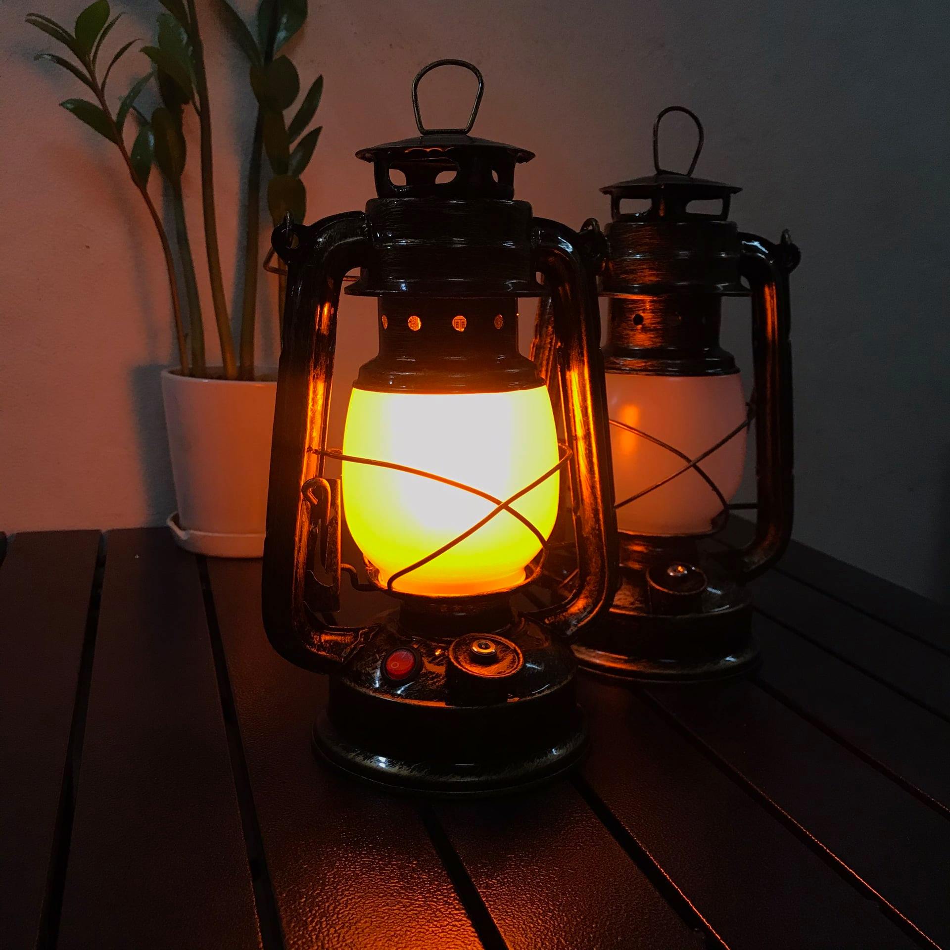 Đèn bão giả cổ ngọn lửa điện tử dùng pin với ánh đèn leo lắt, ánh sáng vàng ấm như ngọn lửa thật, mang lại cảm giác ấm cúng, lãng mạng...Thời gian sáng max 15h