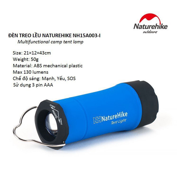 Đèn cắm trại, đèn lều Zoom Led NatureHike NH15A003-I với thiết kế nhỏ gọn, sử dụng pin AAA dễ dàng thay thế, giúp bạn quên đi nỗi lo hết pin trong các chuyến đi camping dài ngày.Không chỉ là một chiếc đèn lều, NH15A003-I còn có thể sử dụng như đèn chiếu sáng, đèn đi đường cầm tay hay lắp trên xe đạp.