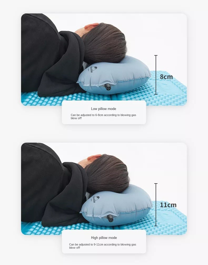 Chúng ta có thể sử dụng ngay hoặc thổi/bơm thêm cho gối căng phồng lên rồi sử dụng. Bạn có thể điều chỉnh độ cao/thấp của gối bằng cách bơm căng thêm hoặc xả bớt hơi ra ngoài. Chất liệu vải 30D co giãn giúp gối căng phồng dễ dàng hơn đồng thời cũng tạo nên sự đàn hồi và êm ái hơn nhiều so với các loại gối hơi khác, giúp bạn có một giấc ngủ ngon hơn sau một hành trình dài.