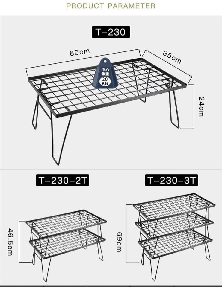 - Kệ để đồ Campingmoon T-230 là một giá để đồ hoàn hảo cho mỗi chuyến dã ngoại của gia đình, có thể đặt các vật nóng như nồi, chảo, giữ cho đồ đạc được khô ráo, ngăn nắp, tiết kiệm không gian