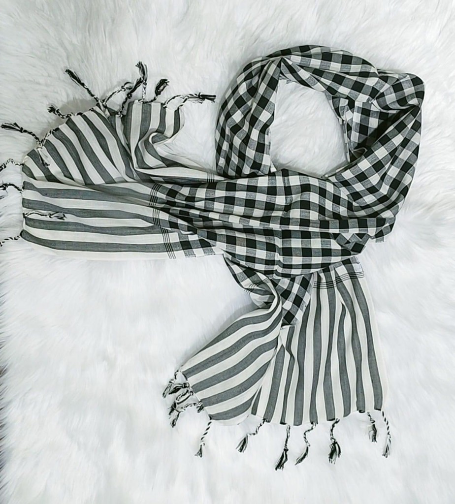 - Sợi vải ở đầu khăn được bện thủ công, rất đẹp mắt và giúp không bị bung chỉ, tưa vải
