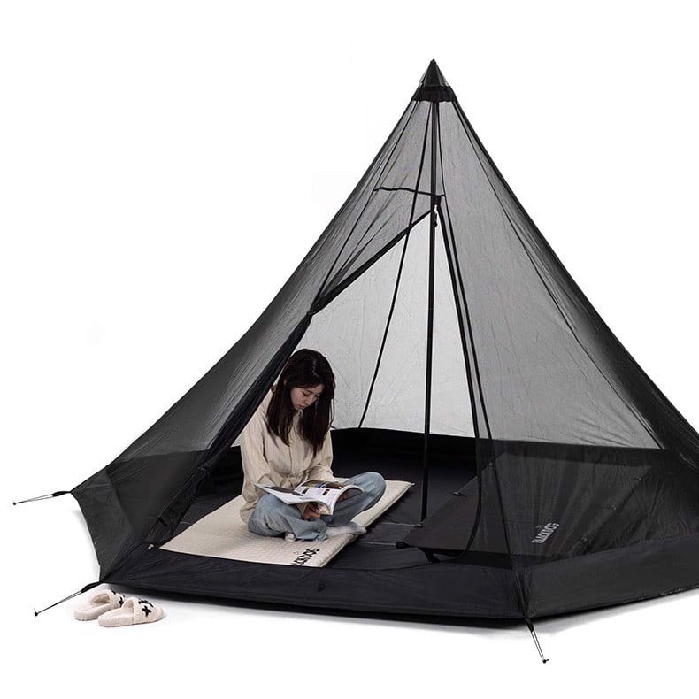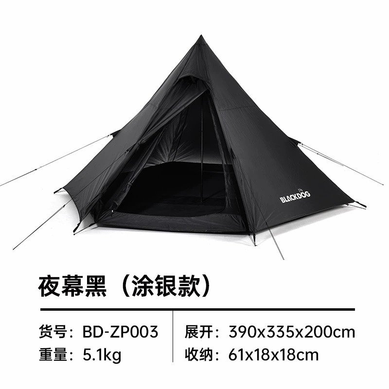 Lều Kim Tự Tháp Cho 3-4 Người Blackdog BD-ZP003 - Mẫu lều Glamping chính hãng cao cấp với màu đen chủ đạo cho một không gian cắm trại huyền bí, thú vị. Lều được thiết kế theo phong cách kim tự tháp với phần đáy rộng cho bạn thỏa sức sắp đặt, derco vật dụng bên trong lều, đỉnh tháp cao cho một không gian bên trong rộng rãi, thoải mái. Với chiều cao 2m giúp bạn có thể ra vào lều và sinh hoạt trong lều một cách thoải mái mà không cần phải khom người.