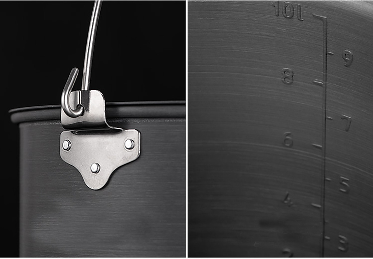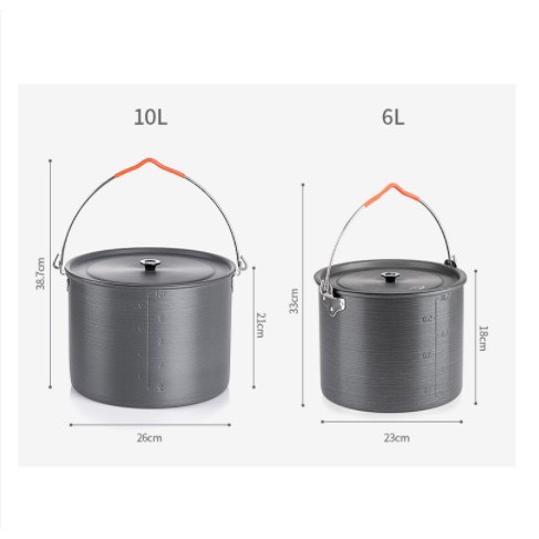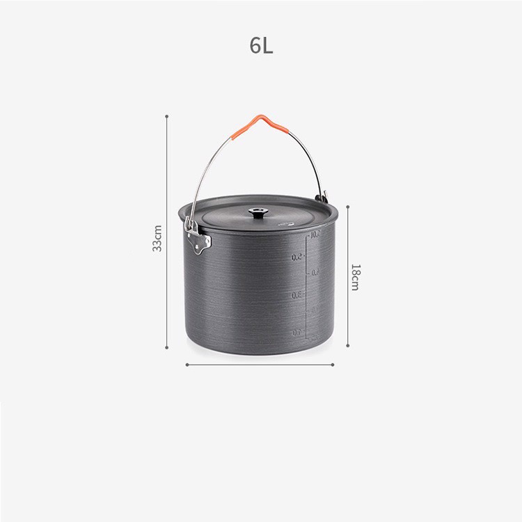 Nồi treo dã ngoại 6L Naturehike NH20CJ009 dùng cho 4 đến 6 người. Thích hợp trong các buổi du lịch dã ngoại gia đình hay tập thể. Nồi được làm từ hợp kim nhôm siêu nhẹ, thiết kế gọn gàng dễ dàng mang theo. Tuy thể tích tới 6L nhưng trọng lượng chỉ 0.7kg, kích thước là (18 + 15) x 23cm.