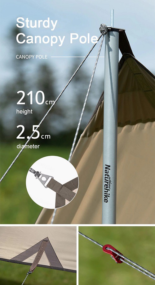 - Đi kièm tăng Glamping Naturehike NH20TM006 cũng là đôi ống kim loại lớn được làm từ thép không rỉ, giúp dựng một không gian che mưa, che nắng ngoài trời vững chắc.