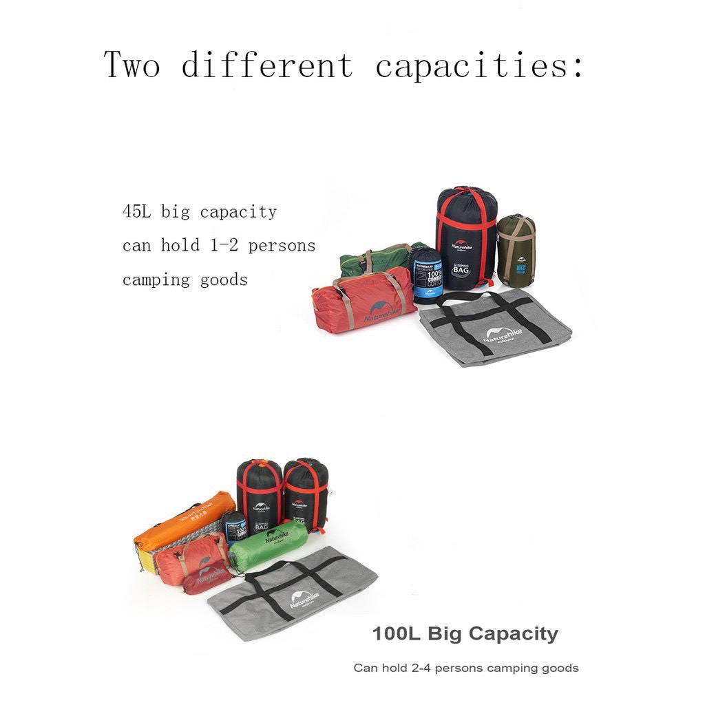 Túi du lịch siêu nhẹ 45L Naturehike Ultralight Duffel Bag NH17S021-M dung tích lớn thuận tiện khi đựng đồ cá nhân, thiết kế đẹp phù hợp với những hoạt động ngoài trời. Chất liệu vải Oxford 420D chống nước nhẹ tăng độ bền sản phẩm và bảo vệ đồ đạc bên trong.