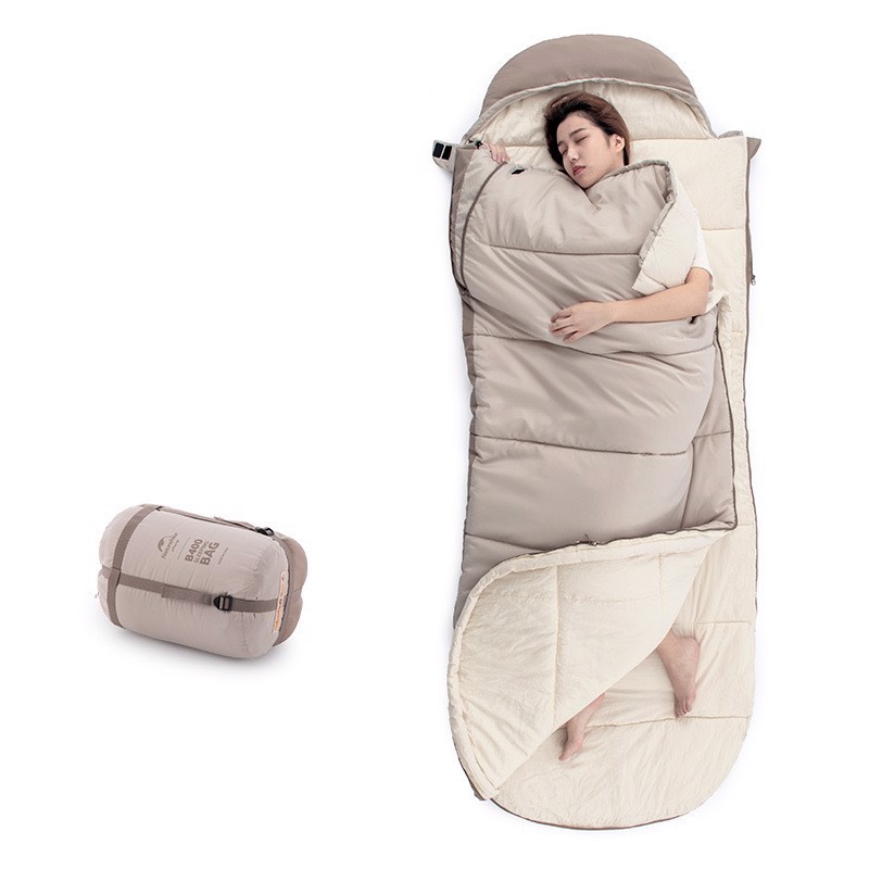 Khoá zip mở linh hoạt hai bên trái và phải có thể ghép đôi thành túi ngủ đôi mang tới một không gian sử dụng chung vô cùng ấm áp, thoải mái thích hợp cho các cặp đôi, gia đình có con nhỏ.