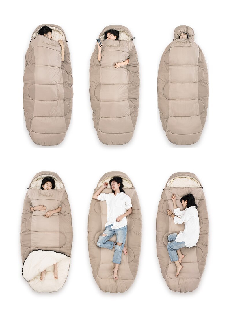 Túi ngủ hình oval Naturehike NH20MSD03 là một món đồ theo phong cách Glamping mang tới cho người sử dụng không gian hài hoà hơn trong hệ đồ glamping đã có. Với tông màu khớp với hệ đồ glamping gần đây cũng như phong cách dạng kén, cùng 2 tay có thể đưa ra ngoài đọc sách cũng làm nên nét đặc sắc riêng cho chiếc túi ngủ này.
