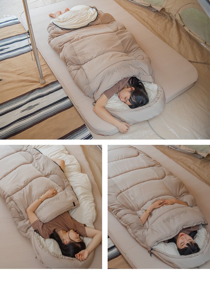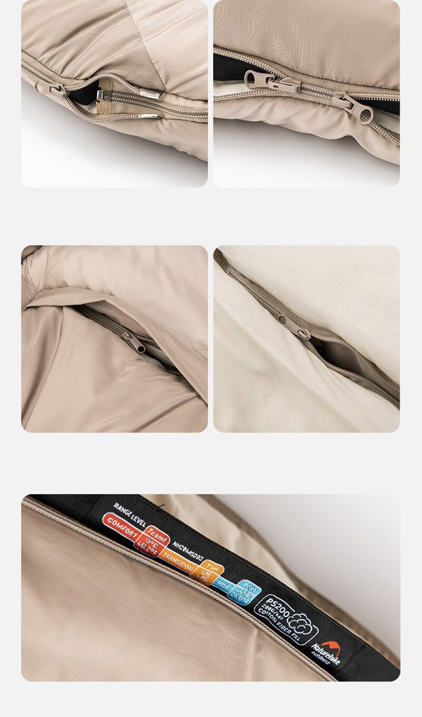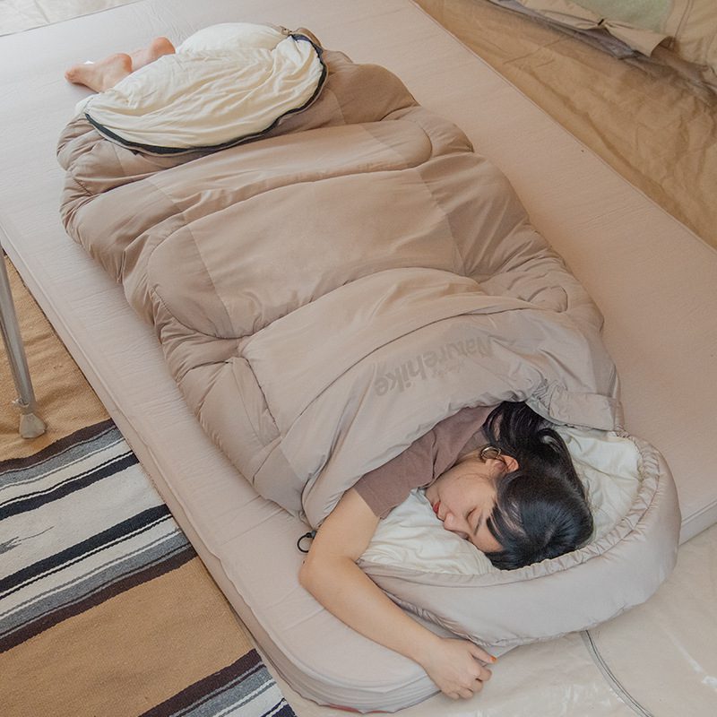 Túi ngủ Cotton Glamping Naturehike NH20MSD03. Tiếp tục là một món đồ theo phong cách Glamping mang tới cho người sử dụng không gian hài hoà hơn trong hệ đồ glamping đã có. Với tông màu khớp với hệ đồ glamping gần đây cũng như phong cách dạng kén, cùng 2 tay có thể đưa ra ngoài đọc sách cũng làm nên nét đặc sắc riêng cho chiếc túi ngủ này.